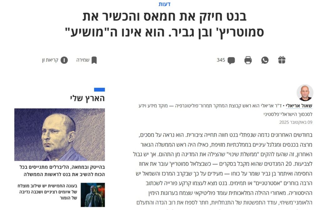 בנט חיזק את חמאס והכשיר את סמוטריץ’ ובן גביר. הוא אינו ה”מושיע” – הארץ 9.10.2025